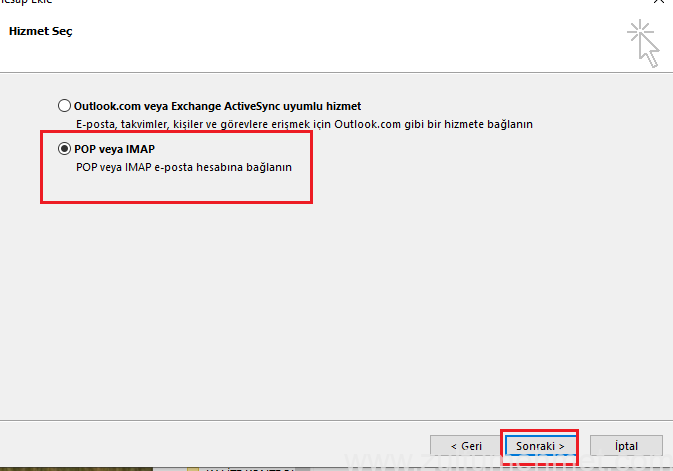 POP ve IMAP seçip sonraki butona tıklayınız.